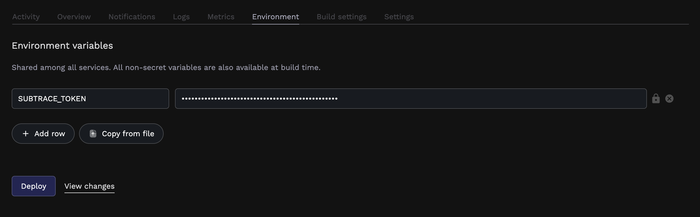SUBTRACE_TOKEN from the Tokens page on the dashboard
